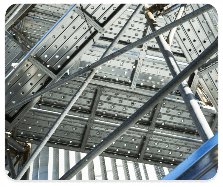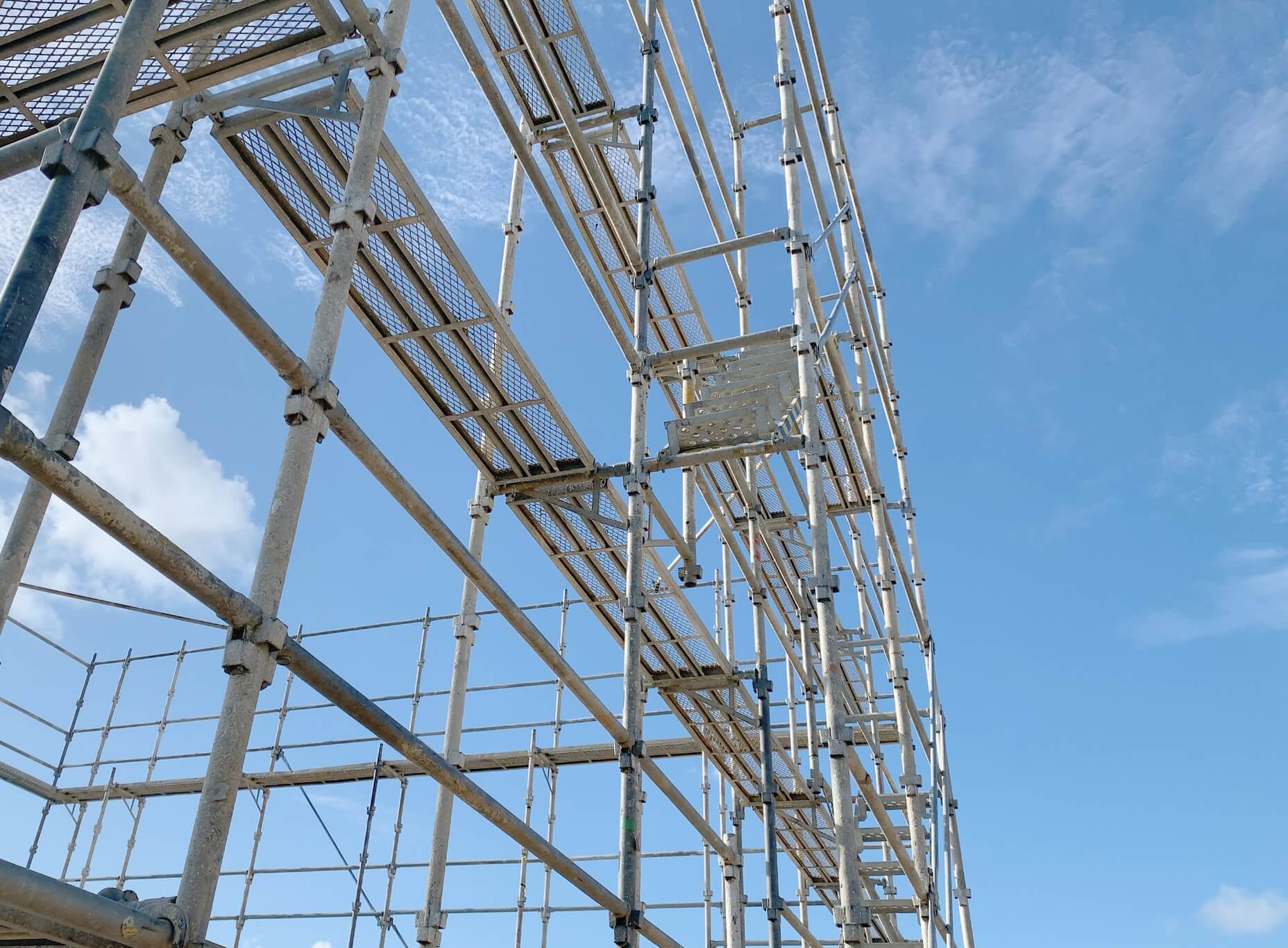 戸建て、ビル、マンションなどの足場の仮設工事を行っています。 工期の短縮、運搬費用の削減、施工人数の少人数化、部材置き場不要複雑な形状の建物に対応可能など、総合的なパフォーマンスという観点から当社では『くさび式足場』を推進しています。 安全かつ迅速に、質の高い足場を提供します。